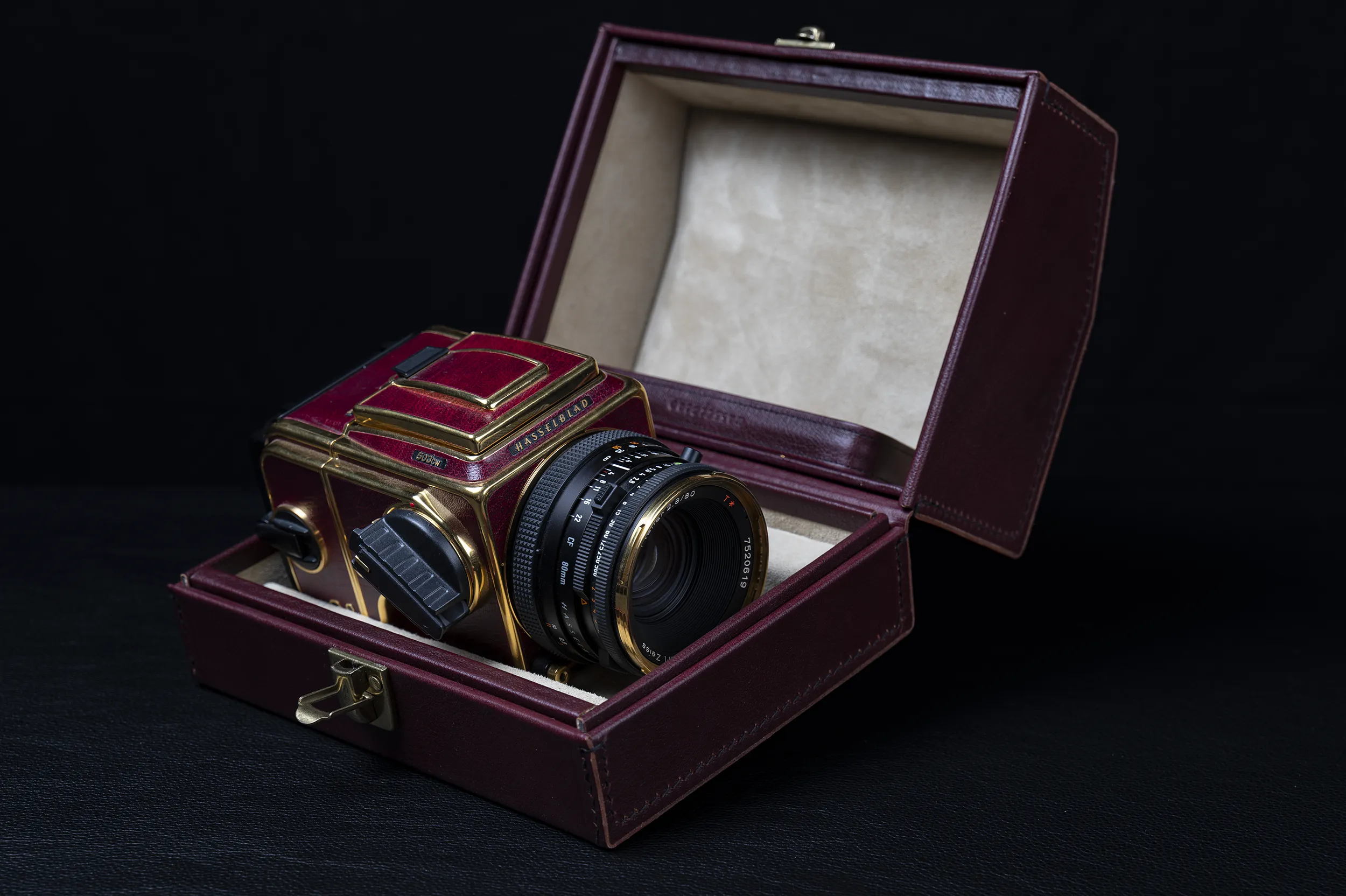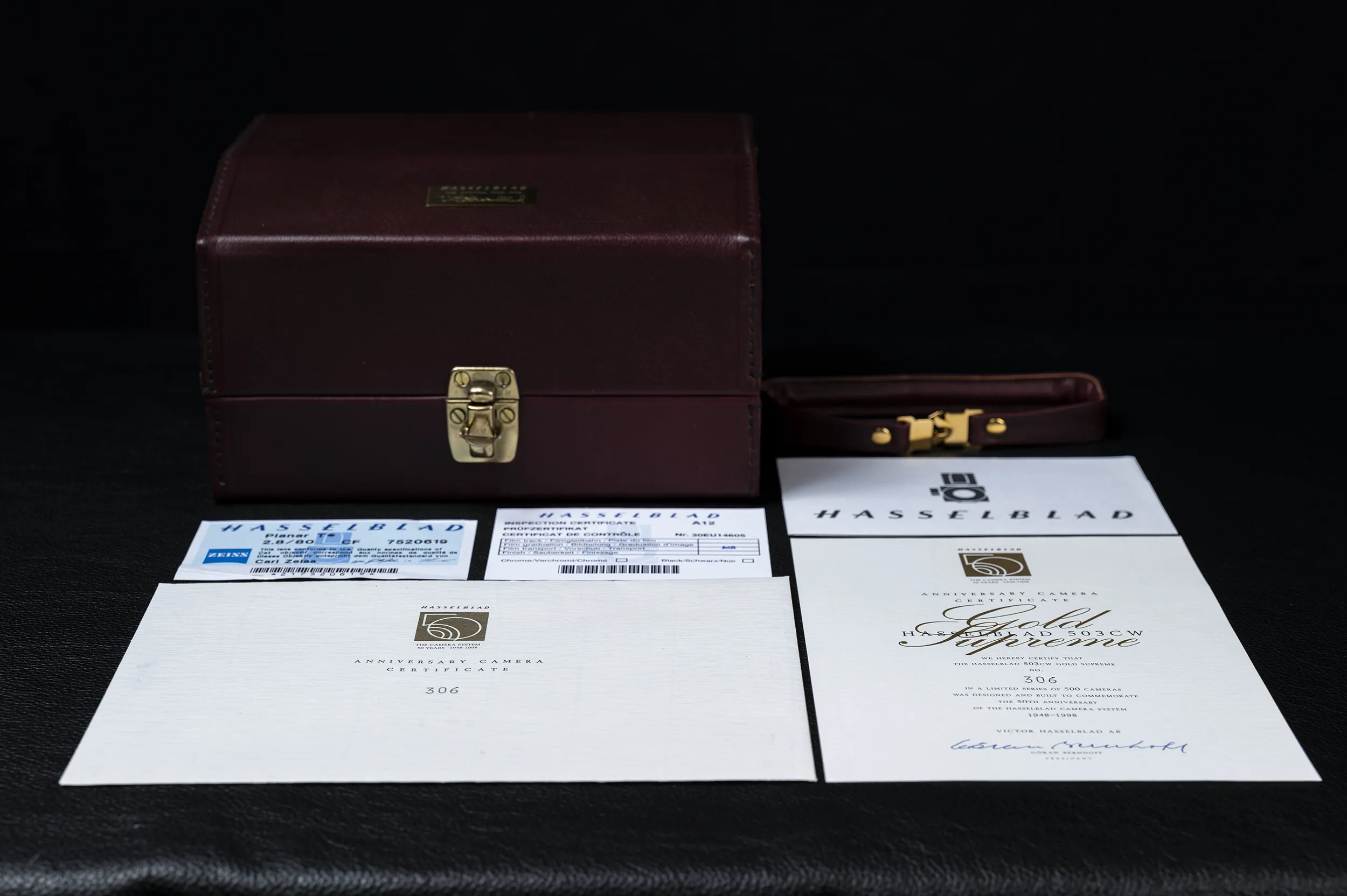 Im Angebot eine super RARE Hasselblad 503CW Gold Supreme „50th Anniversary 1948-1998″ mit Objektiv in OVP !